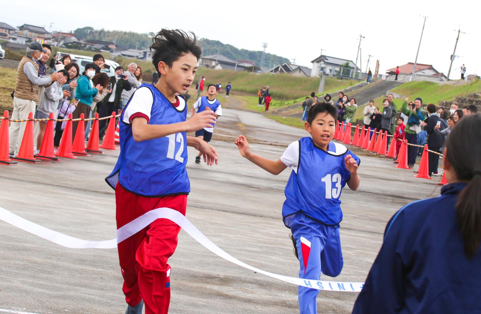 令和6年11月23日(土曜日)に彦山川・中元寺川合流点河川敷にて、開催しました。町内学校1年生から9年生までの95人が参加しました。学年や男女別の8部門に分かれ600メートル~3キロメートルを走るコース。福智町金田河川敷河川合流地点をスタートして途中で折り返すコースでは、沿道やゴール前で友達や保護者からの温かい声援が送られ、子どもたちも一生懸命走り抜けました。
