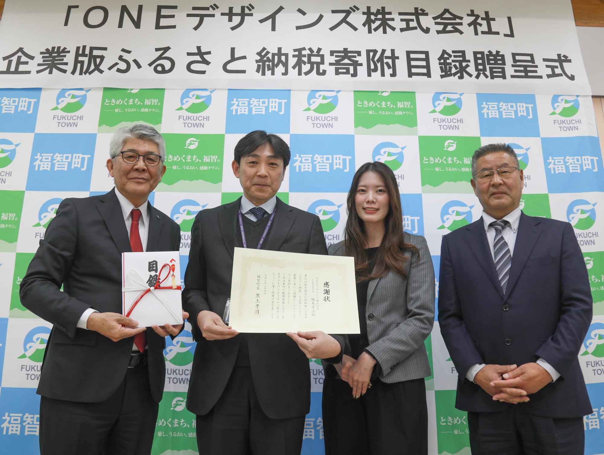 同社の松尾直幸代表より、「福智町のまちづくりに生かしてほしい」との想いとあわせて目録をいただきました。