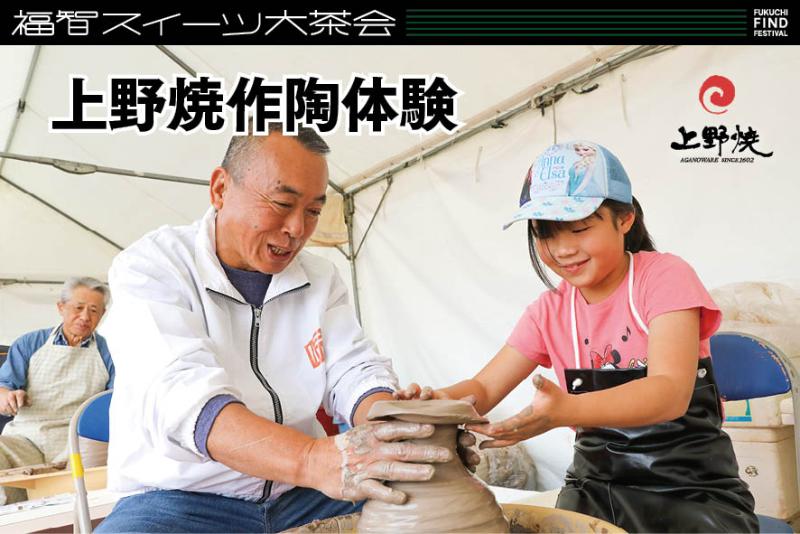 上野焼のろくろ体験コーナーで、気軽に器づくりが体験できます。