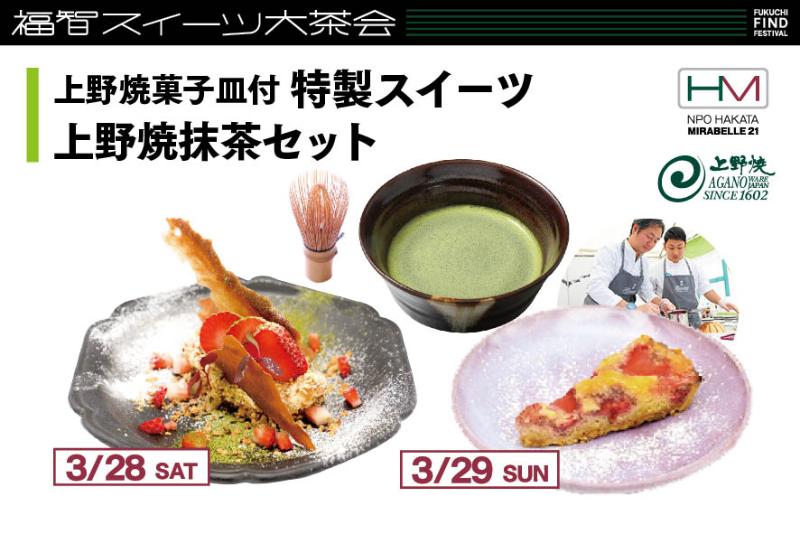 茶陶として栄えた上野焼の里・福智で、茶席に欠かせない茶菓子「スイーツ」にスポットを当てた「福智スイーツ大茶会」では、40を超える県内有名スイーツ店舗が各店自慢の逸品とともに福智町に集結。